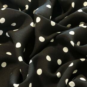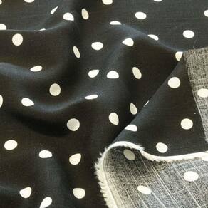 Tecido Viscolinho Estampado 1,50 Metros de Largura Poa Bolas Branca Fundo Preto