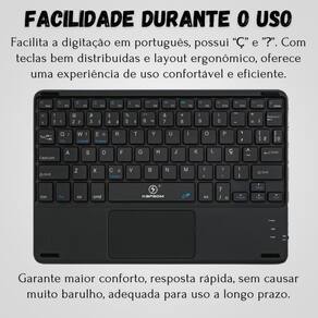 Teclado bluetooth premium para samsung s10 fe 10.9 x520 x526 Cor: preto imagine a liberdade de trabalhar por até 40 horas ininterruptas, com apenas uma recarga de 1 hora e meia com o k-690, isso é possível. Seu design recarregável via entrada tipo c assegura que você esteja sempre pronto para a ação. facilitando cada toque em português, o k-690 é equipado com as essenciais teclas 'ç' e '', tornando a digitação uma experiência fluida e eficiente. Seu layout ergonômico e teclas bem distribuídas garantem conforto e precisão em cada movimento. para conectar-se, basta ligar o teclado e pressionar as teclas fn + c, então procure pelo bluetooth com o nome keyboard em seu dispositivo e conecte-se instantaneamente. Compatível com windows, android, ios e macos, o k-690 é o parceiro perfeito para todas as suas necessidades digitais, onde quer que você esteja. leve, com um alcance de 10 metros e transmissão sem fio, o k-690 é fácil de transportar e pronto para te acompanhar em qualquer aventura digital. Seu design ergonômico e teclas silenciosas tornam-no a escolha ideal para uso prolongado, seja no escritório, em casa ou em viagens. ------------------ Atenção ------------------ Teclado compatível com diversos sistemas via bluetooth Para conectar o teclado no seu dispositivo, o teclado precisa estar ligado, e aperte as teclas '' fn + c ''e no seu dispositivo procure o bluetooth com o nome ''keyboard'' e conectar. ------------------ ------------------ qual é a distância operacional do teclado R: o teclado opera a uma distância de até 10 metros, proporcionando liberdade sem fio para uma experiência de digitação flexível. quanto tempo leva para carregar a bateria R: o tempo de carregamento do teclado é de 1 hora e meia, garantindo recargas rápidas para manter você produtivo. o teclado k-690 possui teclas especiais ou funções adicionais Sim, suas teclas incluem os caracteres especiais 'ç' e '', tornando-o ideal para usuários que necessitam digitar em português. Além disso, o trackpad integrado facilita a navegação e o trabalho sem o uso de um mouse externo. quais dispositivos são compatíveis com o teclado R: é compatível com dispositivos bluetooth, incluindo smartphones, tablets e outros dispositivos habilitados para bluetooth, desde windows, android e ios ------------------ Especificações ------------------ Alcance de 10 metros. Recarregável via entrada tipo c. Transmissão sem fio. Design ergonômico. Teclas silenciosas. Horas de trabalho: 40 horas. Tempo de recarga: 1,5 horas. Compatível com windows, android, ios e macos. Peso: 283g. ------------------ Conteúdo ------------------ 1x teclado com touchpad Anúncio referente a teclado Acessórios que ambientam as fotos não inclusos. ------------------ Apresentação: ------------------ - qualidade garantida. - atendimento qualificado. - enviamos para todo o brasil. - compra garantida. - despachamos em até 1 dia útil após confirmação do pagamento Garantimos a devolução por arrependimento em até 7 dias, após o recebimento e de 15 dias contra defeitos de fabricação. Homologação Anatel: 079902113999