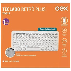 Características:- marca: oex- modelo: tc510especificações:- teclado multimídia- conexão bluetooth- padrão abnt2- alcance máximo de 10m do dispositivo pareado- teclas redondas e silenciosas- 78 teclas- compatível com todas as plataformas- bateria interna de lítio- recarga via type-c- duração da bateria em uso: até uma semana- duração da bateria em stand-by: até 60 dias- material: plástico abs- dimensões: 28,5 x 12,5 x 1,8cm- peso: 355gconteúdo da embalagem:- teclado oex Homologação Anatel: 079902113999 Marca: Não Informado