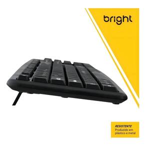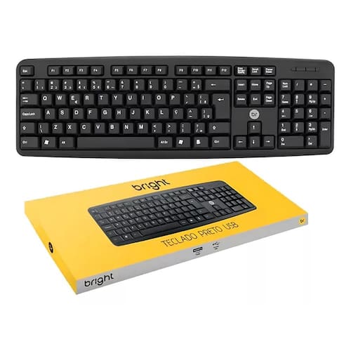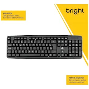 Apresentamos o Teclado USB Preto Básico Bright, uma solução simples e eficiente para suas necessidades diárias de digitação. Ideal para o uso em escritórios, home office, ou para navegação e tarefas cotidianas, esse teclado oferece um design funcional e uma excelente experiência de uso.Perfeito para quem busca um teclado prático, durável e com uma excelente relação custo-benefício.Especificações Técnicas:Marca: BrightModelo: Basic Preto 0014Conexão: USBPadrão: ABNT2Teclas: 107 teclas alfanuméricas e de funções, incluindo "Ç" e "Alt Gr"Comprimento do cabo: 1,3 metrosCor: PretoFuncionalidades do Produto:Compatibilidade: Conexão USB que dispensa drivers adicionais, funcionando com PCs, notebooks e outros dispositivos.Design Funcional: Layout simples e prático, ideal para digitação rápida e precisa.Ergonomia: Acomodação confortável para digitação, com um design que evita sobrecarga nas mãos e punhos.Durabilidade: Construção robusta que resiste ao uso diário com alta confiabilidade.Benefícios do Produto:Conectividade rápida e fácil: Plug and play, sem necessidade de instalação de software.Ótima relação custo-benefício: Ideal para quem precisa de um teclado básico, mas confiável, com preço acessível.Design que economiza espaço: Compacto, fácil de integrar a qualquer ambiente de trabalho ou estudo.Conforto e precisão: Acomodações ideais para uso prolongado sem desconforto.Dicas de Uso e Conservação:Mantenha o teclado em local seco e arejado para prolongar sua durabilidade.Evite o contato com líquidos para preservar a integridade do dispositivo.Limpe com pano seco e macio, evitando o uso de produtos abrasivos.Tags: teclado usb preto básico fio 1,3 m; teclado com fio; teclado padrão; teclado compacto conexão usb; teclado usb preto; teclado simples; teclado para pc; teclado para computador; teclado para notebook; teclado usb; teclado preto; teclado usb preto; teclado preto usb; teclado de escritorio; teclado desktop;Itens Inclusos:1x Teclado USB Preto Básico BrightGarantia: 1 ano de fábrica.