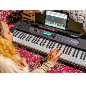 Teclado digital casio lk-s450c2 casiotone preto Teclado 61 chaves resposta ao toque 3 tipos, desligado iluminação do teclado número máximo de teclas acesas simultaneamente: 10, podem ser desativadas polifonia máxima 48 notas fonte de som tons predefinidos: 600 outros: camada, divisão efeitos reverberação 20 tipos, tom, desligado ; coro 10 tipos, tom ; dsp integrado em alguns tons metrônomo batida: batida sem som, 1 a 16 batidas tempo: 20 a 255 banco de canções canção de demonstração: 1 canções integradas: 160 canções de usuário: 200 1 parte desativada: mão esquerda, mão direita, ambas as mãos função de aula tipo de aula: 3 etapas listen, watch, remember ; modo easy parte da lição: mão esquerda, mão direita, ambas as mãos outros: loop ab, guia de vozes de dedilhado, guia de som de notas, avaliação de desempenho acompanhamento automático ritmos predefinidos: 200 tipos ritmos do usuário: 10 tipos predefinições de um toque: 200 tipos outros: intro, ending; mudança de modo de dedilhado de acordes livro de acordes guia de som de acordes função de demonstração banco de canções integrado 110 canções gravador midi gravação em tempo real, reprodução gravação de tom: 1 gravação de ritmo: 1 gravação multitrilha: 5 canções, 6 trilhas 1 trilha do sistema, 5 trilhas solo capacidade: 1 canção, aproximadamente 40.000 notas ajuste de volume da função metrônomo; ritmo; canção outras funções transpor: 1 oitava -12 a 0 a +12 semitons mudança de oitava: -3 a 0 a +3 oitavas afinação: a4 = 415,5 a 465,9 hz padrão inicial: 440,0 hz função app dispositivos suportados: ios, android conexão de terminal usb função midi recepção multi-timbre de 16 canais; gm nível 1 padrão jacks jaque phones / output: mini jaque estéreo jaque mic in: jaque padrão conexão de microfone dinâmico ; impedância de entrada: 3 ko; sensibilidade de entrada: 10 mv conector audio in: minitomada estéreo impedância de entrada: 10 ko; sensibilidade de entrada: 200 mv porta usb to host: porta micro-b usb to device: jaque pedal tipo a : jack padrão pedal sustain, sostenuto, soft, metrônomo terminal adaptador ac 9,5 v dc requerimentos poderosos alimentação de 2 vias baterias pilhas alcalinas tamanho aa 6 ou baterias recarregáveis De níquel metal hidreto aa 2 6 vida útil da bateria: aproximadamente 3 horas de operação contínua o tempo real de operação contínua pode ser menor devido ao tipo de bateria, tipo de desempenho, e ambiente de uso. adaptador ca ad-e95100l dc 9,5 v caixas de som 13 cm 6 cm oval 2 saída: 2,5 w + 2,5 w consumo de energia 9,5 v = 7,5 w lcd contraste ajustável dimensões 93,0 l 25,8 p 8,4 a cm 36 5/8 10 3/16 3 5/16 polegadas peso aproximadamente 4,6 kg 10,1 lbs excluindo baterias