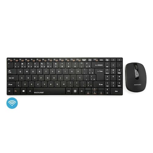 Compatibilidade Windows Velocidade DPI: 800, 1200, 1600 Alimentação 2 Pilhas AAA (Não inclusas) Frequência: 2,4 GHz Peso do produto: 420g Dimensões do produto: 34,2x11,2x1,9cm Conteúdo da Embalagem: 1 Teclado Sem Fio; 1 Mouse Sem Fio; 1 Micro receptorUSB; 1 Guia Rápido Certificado Anatel: 047091603111