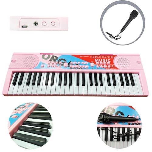 Número de teclas: 49 Sensibilidade ao toque: sim Microfone: incluído Conexão: usb Músicas demonstrativas: 9 Ritmos: 7 Tons: 7 Teclado eletronico com 49 teclas brinquedo infantil piano