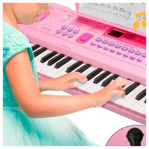 O teclado acompanha microfone, possui 16 músicas demonstrativa, 10 ritmos, 6 demos, 8 percussao, 2 alto falante e muitas outras funções, incluído opção de gravação! Além de estimular o interesse pela música, ele possui modo aprendizado para introduzir noções musicais básicas aos iniciantes. Não possui saida para fone de ouvido ou mesa de som.