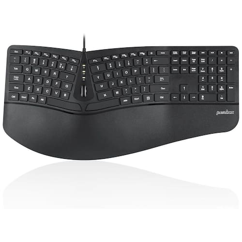 DESIGN ERGONÔMICO DE TECLAS DIVIDIDAS Um teclado de tamanho normal com um design curvo que separa as teclas em vários grupos para otimizar o posicionamento da mão esquerda e direita para reduzir a flexão do pulso para fora durante a digitação PERIBOARD 330 é um conjunto de teclado e um descanso de pulso acoplável com tecnologia de ímã para ajustar a três ângulos de digitação diferentes para uma experiência de digitação descontraída e personalizada Com 12 funções multimídia e teclas de atalho TECLAS ILUMINADAS Luz de fundo branca bonita e ajustável para facilitar a visualização das teclas Adequado para ambiente de trabalho com iluminação mais fraca ROLAGEM DE INCLINAÇÃO DE 4 VIAS Role facilmente para cima e para baixo, da esquerda para a direita nas páginas e aplicativos com a roda de rolagem integrada que pode rolar de quatro maneiras DESIGN SLIM Geometria superior da chave curvada com uma forma naturalmente arqueada e suporte de apoio para as mãos ajustável integrado que promove uma posição neutra do pulso em um design fino com teclas de baixo perfil Uma altura de 1,5 Marca: Não Informado