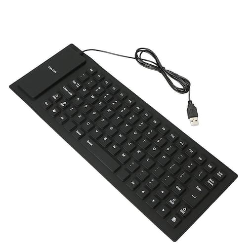 Características É macio e durável; Tem um toque confortável; À prova d'água Ultra slim; Fácil armazenamento; Material de silicone macio permite digitação silenciosa.