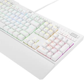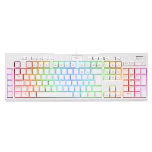 Teclado gamer brahma pro k586w rgb switch optico brown - branco Cor de teclado: branco Idioma: português brasil Teclado mecânico óptico gamer redragon brahma pro rgb switch brown abnt2 branco - k586w-rgb-pro pt-brown