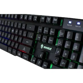 Marca: Evolut Layout: Português Brasil ABNT2 Cor: Preto Iluminação: Retroiluminação Rainbow RGB Tecnologia: Anti-Ghosting Conexão: USB