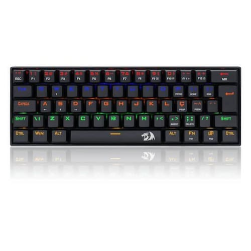 Especificações: - Switches: Redragon MK II - Acionamento: Mecânico - DIY: Sim - COR: Preto - Formato: 60% (61 Teclas) - Design: High Profile - Layout: ABNT2 - Conectividade: Cabo USB-C para USB-A removível - Software: Não - Altura Ajustável: Sim - Materiais do case: Plástico ABS - Iluminação: Rainbow - Rollover: N-Key - Comprimento do cabo: 1.80 - Keycaps: Doubleshot ABS