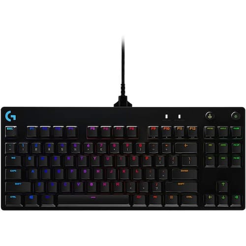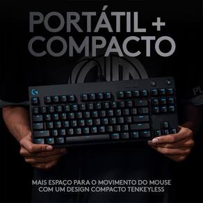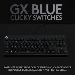 Este teclado da Logitech vai ser ideal para o seu PC; apresenta um design compacto sem pontas, completo com um cabo destacável para usuários que gostam de levar seus equipamentos para jogos em qualquer lugar. Construído com interruptores Logitech GX Blue, este teclado oferece uma experiência de digitação tátil e audível. A iluminação RGB LIGHTSYNC oferece aos usuários muitas opções de cores e efeitos de iluminação para escolher de acordo com seu estilo. Modelo: TECLADO LOGITECH G-PRO MECHANICAL RGB Referência : RGB 920-009388 Tipo de conexão: Com fio Conectividade: USB tipo - A Especificações Opinião dos Usuários Modelo TECLADO LOGITECH G-PRO MECHANICAL RGB Referência RGB 920-009388 Tipo de conexão Com fio Conectividade USB tipo - A Interface USB Mecânico Sim Switch GX Blue Clicky Keycaps Impressão a Laser, plástico ABS Tempo de resposta 1 ms Iluminação RGB Chroma Layout US Compatibilidade Windows® 7 ou superior, macOS 10.11 ou superior. Logitech G HUB Memória integrada Perfil integrado para armazenamento de iluminação Tamanho Tenkeyless Software Sim Anti-ghosting Integrado 100% Tamanho do cabo 1,8 m Descanso de pulso Não Material Plástico ABS Cor Preto Recursos switches GX Blue Clicky| Compacto, durável, ultra-portátil| Iluminação RGB LIGHTSYNC com memória integrada para gravar seu padrão de iluminação| Cabo micro USB destacável para fácil transporte| Três níveis para de altura para maior conforto| Peso bruto 980 g Dimensões Comprimento: 153 mm Largura: 360,5 mm Altura: 34,3 mm Conteúdo da Embalagem Teclado PRO com switches GX Blue Clicky. | Cabo de dados | Documentação do usuário.