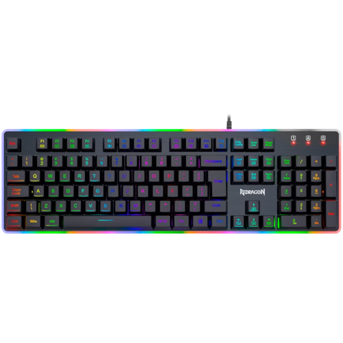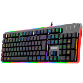O Teclado Gamer de Membrana Redragon Dyaus 2 K509-RGB é a escolha ideal para jogadores que buscam um periférico silencioso, resistente e com um design elegante para o setup. Este modelo destaca-se por possuir uma borda iluminada em RGB que envolve todo o chassi, criando um efeito visual único de preenchimento de luz na mesa. Suas teclas de perfil baixo proporcionam uma digitação rápida, suave e extremamente silenciosa, sendo perfeito para quem joga durante a noite ou trabalha em ambientes compartilhados. O Dyaus 2 é construído em plástico ABS de alta resistência com acabamento em alumínio na parte superior, garantindo uma durabilidade superior aos teclados de membrana convencionais. Além disso, conta com tecnologia anti-ghosting em 25 teclas e é resistente a respingos, oferecendo segurança contra pequenos acidentes com líquidos. Com 11 teclas multimídia integradas e diversos modos de iluminação, este teclado une funcionalidade e estética de forma equilibrada e eficiente. Especificações Técnicas
