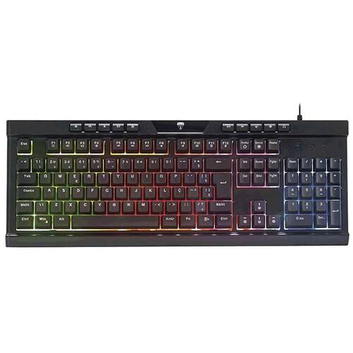 Características Principais Teclas: 104 Teclas + 10 Teclas Multimídia: Oferece controle total para jogos e tarefas diárias, permitindo acesso rápido a funções como volume e reprodução de mídia. Anti-ghosting: 26 Teclas Anti-Ghosting: Garante que todos os comandos sejam registrados com precisão, mesmo durante as jogadas mais intensas. Iluminação RGB: Rainbow Backlit: A iluminação RGB não só adiciona um toque divertido e arrojado ao seu setup, mas também melhora a visibilidade das teclas em ambientes com pouca luz.