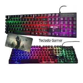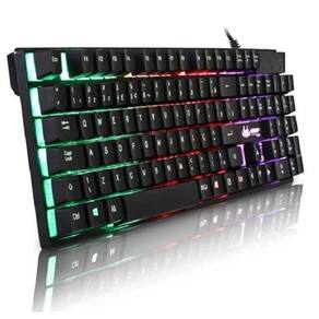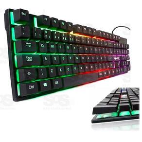 Teclado Gamer Querty Knup KP-2043 Preto com Luz Multi Color Descrição Tem design ergonômico, muito confortável, prático para elaborar documentos e pesquisas na Internet. A sua retro iluminação torna o teclado elegante e destaca sua composição quando é utilizado em espaços mal iluminados. Possui tecnologia Anti-Ghost que é indispensável se você precisa de utilização intensiva do periférico e poderá evitar falhas ao tocar várias teclas ao mesmo tempo. Este teclado Knup de alto desempenho permite que você desfrute de horas ilimitadas de jogos. Foi especialmente desenvolvido para que você possa expressar suas habilidades e seu estilo. Melhore a sua experiência de jogo, seja você só um amador ou todo um especialista, e faça que suas jogadas alcance outro nível. Distinção a toda corSua retroiluminação lhe dá um toque diferente ao seu dispositivo e destaca sua composição quando é utilizado em espaços mal iluminados.Tecnologia antighosting.Características: - Tecnologia Anti-Ghost- 12 Teclas de atalho multimídia- Keycaps com design confortável, qualidade e digitação precisa- Teclas gravadas a laser e sistema de retro iluminação- Teclas macias e de acionamento preciso- 3 cores para iluminação de fundoEspecificações: - Dimensões: 443 x 130 x 30 mm (l x C x a)- quantidade de teclas: 107- Conexão: usb-alimentação: 5 Vdc (via porta usb)- Consumo: 100mA- Compatível com Windows XP/7/8.1/10*Imagens Ilustrativas Contém: - 01 Teclado Gamer Knup KP-2043 Preto com Luz Multi Color - 01 Manual de instruções