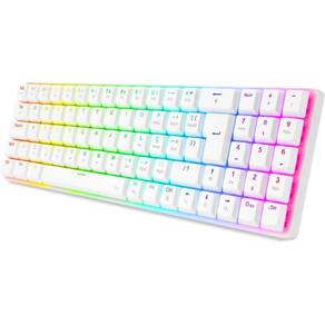 Teclado Gamer Redragon Ashe 75% RGB ABNT2 Branco Switch AzulO Teclado Mecânico Gamer da Redragon foi projetado para quem busca desempenho, estilo e economia de espaço.Com layout compacto de 79 teclas no formato 75%, iluminação RGB vibrante e keycaps duráveis com tecnologia double shot injection, ele é ideal para setups modernos e funcionais.Além disso, conta com switches mecânicos Blue para resposta tátil e sonora precisa, além de cabo USB-C destacável para mais praticidade no transporte.
