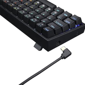 Especificações: - switches: redragon mk ii blue - acionamento: mecânico - diy: sim - cor: preto - formato: 65% 68 teclas - design: high profile - layout: abnt2 - conectividade: cabo usb-c para usb-a removível - software: não - altura ajustável: sim - materiais do case: plástico abs - iluminação: rgb - rollover: n-key - comprimento do cabo: 1.80 - keycaps: doubleshot abs