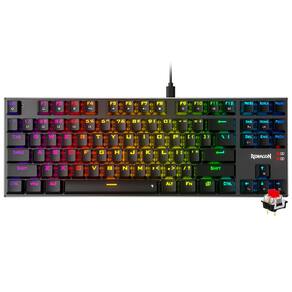O Teclado Redragon Dharma combina design compacto e funcionalidade, ideal para gamers. Com construção em alumínio, oferece durabilidade e um visual sofisticado. A iluminação RGB personalizável adiciona estilo ao setup. O layout 80% TKL economiza espaço, mantendo a eficiência. Equipado com switches Red, proporciona toques suaves e silenciosos. Conectividade 2.4GHz, Bluetooth e USB-C garante versatilidade para diferentes dispositivos e modos de uso.