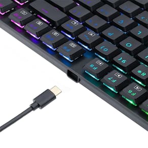 Explore um novo nível de eficiência e estilo com o Teclado Redragon APS! Com iluminação RGB Chroma vibrante, este teclado oferece não apenas funcionalidade excepcional, mas também um visual deslumbrante para aprimorar seu espaço de trabalho. Sua conexão via cabo USB-C proporciona uma experiência de digitação rápida e estável. Além disso, o design compacto e as teclas low profile tornam-no ideal para usuários com pouco espaço, garantindo máximo conforto. Modelo: APS Tipo de conexão: Com fio Interface: USB-C Mecânico: Sim Modelo APS Tipo de conexão Com fio Interface USB-C Mecânico Sim Keycaps Doubleshot Iluminação RGB Layout ABNT2 Tamanho TKL Material Plástico ABS Cor Preto