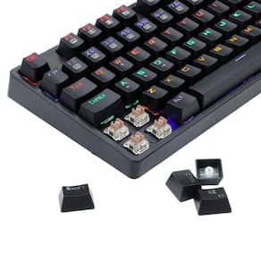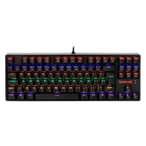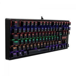 Teclado Mecânico Gamer Redragon Daksa K576R Rainbow Switch Brown DESCRIÇÃOO teclado Mecânico Gamer Daksa Rainbow da Redragon, traz todo poder dos teclados mecânicos para seu setup, com o sistema N-Key Rollover, para efeito Anti-Ghosting em todas as teclas, utiliza os renomados switches mecânicos Outemu Brown, traz também o sistema Win-Key Lock que desabilita o botão Win, evitando que sua tela seja minimizada na hora de jogar. O produto também possui LED RGB, com um sistema de iluminação estilizado nas laterais do frame, deixando o teclado ainda mais bonito e ajudando na visualização das teclas no escuro. Seu material de alta resistência oferece para os jogadores muito além de um produto de ótimo custo benefício. Ele é feito em plástico ABS e seu USB é banhado a ouro, trazendo muito mais resistência e durabilidade para o produto. ESPECIFICAÇÕES Fabricante: redragonModelo: daksaComprimento do Cabo: 1,8Resolução: até 4800 DPICor: pretoIluminação: rainbowTipo Teclado: MecânicoLayout: abnt 2 (com o Ç )Conector: usb Switch: outemu BrownREQUISITOSPC entrada USB 2.0ITENS INCLUSOSTecladoManualExtrator de teclasExtrator de switchs5 x Switches Brown