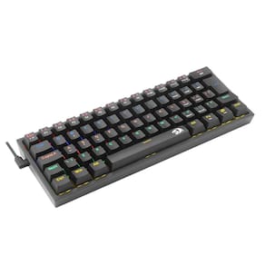 Nome:teclado mec nico gamer fizz rainbow preto switch azul Marca: redragon Part number: k617-r-b pt-blue Ean: 6950376708304 Características: - layout compacto 60% para os gamers que procuram deixar o máximo de espaço possível sobre a mesa. - cabo usb tipo c removível para maior praticidade durante o transporte. - keycaps feitas com o método double shot injection resultando em legendas duradouras. - layout abnt2 feito especialmente para o mercado brasileiro Especificações: Acionamento: mecânico Hotswap diy: sim Cor: preto Formato: 60% Design: carcaça alta Layout: abnt2 Conectividade: usb 2.0 tipo c Altura ajustável: sim Materiais do case: plástico abs Iluminação: rainbow Rollover: n-key rollover Comprimento do cabo: 1.8 m Keycaps: abs doubleshot