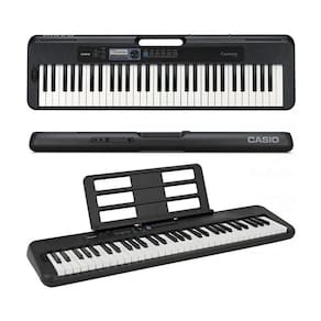 Com o CT-S300, você curte sua música quando e onde quiser. Com tamanho compacto, de 930 mm x 256 mm x 73 mm, ele apresenta um volume 30% menor do que o modelo CTK-3500 e oferece aproximadamente 19 horas de autonomia com pilhas alcalinas*. A alça na parte superior do teclado oferece maior praticidade para transporte do instrumento, que pesa somente 3,3 kg. Graças ao design arredondado das suas bordas e arestas, carregá-lo também é muito seguro.