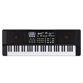 O Teclado Queens é ideal para aqueles que estão iniciando suas atividades musicais. Possui 61 teclas e controle de velocidade, além de 10 músicas demonstrativas e 100 tons. Possui tela digital, também incluso: microfone, cabo USB e fonte. Com controle de volume, é muito fácil de operar. Muito utilizado em estúdios, funciona tanto à pilha (não inclusas) quanto à fonte de energia (2x1,5W).