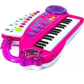 O Teclado Musical é um brinquedo que vai estimular o desenvolvimento auditivo, a coordenação motora dos olhos e mãos, além de aguçar o raciocínio dos seu(s) filho(s), despertando também o seu talento com muita criatividade e diversão, e revelando assim o novo(a) astro da música.