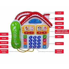 Teclado musical interativo com som e luzes -1400 shiny toys Descrição: Possui 4 modos funções para a criança se divertir modo 1: som, nome dos animais,números, nome dos símbolos da matemática, nome das formas geométricas e jogo de matemática, modo 2: som dos animais com música, nome das formas geométricas com música, barulho das teclas do telefone e jogo de matemática, modo 3: nome das formas geométrica com música, jogo de matemática, teclas tocam música modo 4: jogo onde está. Otelefone faz uma pergunta e você aperta o botão com a resposta funciona com 3 pilhas aa não incluídas