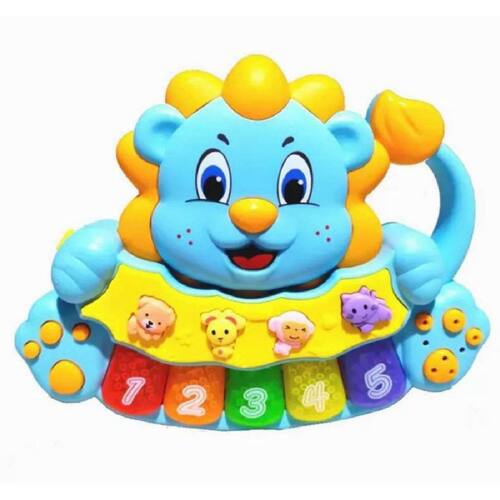 Possui 5 teclas coloridas que emitem som das notas musicais, sons de animais e canções de ninar.