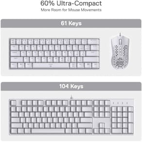 Redragon K630 Dragonborn 60% Wired RGB Gaming Keyboard, 61 Keys Compact Mechanical Keyboard with Tactile Brown Switch, Pro Driver Support, White - 60% Layout In Wired: Brand New Redragon 60% design in wired only mode due to popular demand. NKRO 61 keys for ultra-compact and minimalistic design, frees up precious desk space for less clutter. - Hot-Swappable Brown Switches: Tactile brown switches provide a soft bump but no click, unlike Blue, switches for quiet use. Hot-swappable with other Redragon switches. Made to last with switches rated for 50 million keypresses. - Vibrant RGB: Up to 11 presets backlighting modes are free to choose by the keyboard itself. Brightness and flowing speed is also adjustable on board. Select your own preferred modes for any playing. - Pro Software Customizable: Expand your options using the available software to design your own new modes and effects found on redragonshop. Macros with different keybindings or shortcuts for more efficient work and gaming. Check detail description below for download info. - Dedicated for FPS Gamer: Place the keyboard proper straight on your desktop and no more crooked way for mouse space saving, your mouse will never hit the keyboard any more. Enjoy waving the mouse without any worries and go get that Team Kills.