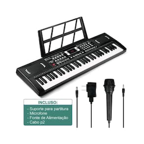 O Teclado Sonata SK4000, é um instrumento musical versátil e completo, ideal para músicos iniciantes. Tem 61 teclas que abrangem 5 oitavas, este teclado oferece uma ampla gama de possibilidades sonoras. Recursos como sustain, vibrato e metrônomo garantem uma experiência musical rica e dinâmica. O teclado também possui entrada para microfone e saída para fone de ouvido, permitindo performances privados ou em grupo.