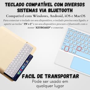 Teclado trackpad abnt para tablet lenovo p12 12.7 polegadas Cor: preto Imagine a liberdade de trabalhar por até 40 horas ininterruptas, com apenas uma recarga de 1 hora e meia com o k-690, isso é possível. Seu design recarregável via entrada tipo c assegura que você esteja sempre pronto para a ação. Facilitando cada toque em português, o k-690 é equipado com as essenciais teclas 'ç' e '', tornando a digitação uma experiência fluida e eficiente. Seu layout ergonômico e teclas bem distribuídas garantem conforto e precisão em cada movimento. Para conectar-se, basta ligar o teclado e pressionar as teclas fn + c, então procure pelo bluetooth com o nome keyboard em seu dispositivo e conecte-se instantaneamente. Compatível com windows, android, ios e macos, o k-690 é o parceiro perfeito para todas as suas necessidades digitais, onde quer que você esteja. Leve, com um alcance de 10 metros e transmissão sem fio, o k-690 é fácil de transportar e pronto para te acompanhar em qualquer aventura digital. Seu design ergonômico e teclas silenciosas tornam-no a escolha ideal para uso prolongado, seja no escritório, em casa ou em viagens. ------------------ Atenção ------------------ Teclado compatível com diversos sistemas via bluetooth Para conectar o teclado no seu dispositivo, o teclado precisa estar ligado, e aperte as teclas '' fn + c ''e no seu dispositivo procure o bluetooth com o nome ''keyboard'' e conectar. ------------------ ------------------ Qual é a distância operacional do teclado R: o teclado opera a uma distância de até 10 metros, proporcionando liberdade sem fio para uma experiência de digitação flexível. Quanto tempo leva para carregar a bateria R: o tempo de carregamento do teclado é de 1 hora e meia, garantindo recargas rápidas para manter você produtivo. O teclado k-690 possui teclas especiais ou funções adicionais Sim, suas teclas incluem os caracteres especiais 'ç' e '', tornando-o ideal para usuários que necessitam digitar em português. Além disso, o trackpad integrado facilita a navegação e o trabalho sem o uso de um mouse externo. Quais dispositivos são compatíveis com o teclado R: é compatível com dispositivos bluetooth, incluindo smartphones, tablets e outros dispositivos habilitados para bluetooth, desde windows, android e ios ------------------ Especificações ------------------ Alcance de 10 metros. Recarregável via entrada tipo c. Transmissão sem fio. Design ergonômico. Teclas silenciosas. Horas de trabalho: 40 horas. Tempo de recarga: 1,5 horas. Compatível com windows, android, ios e macos. Peso: 283g. ------------------ Conteúdo ------------------ 1x teclado com touchpad Anúncio referente a teclado Acessórios que ambientam as fotos não inclusos. ------------------ Apresentação: ------------------ - qualidade garantida. - atendimento qualificado. - enviamos para todo o brasil. - compra garantida. - despachamos em até 1 dia útil após confirmação do pagamento Garantimos a devolução por arrependimento em até 7 dias, após o recebimento e de 15 dias contra defeitos de fabricação. Homologação Anatel: 079902113999