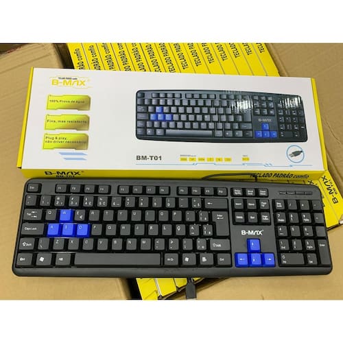 Excelente opção para o dia a dia, teclado confortável, smples e prático, perfeto para escrtórios. Especificações:– Marca: BMAX– Modelo: T01– Teclas de Perfil Baixo e Silenciosas– Plug and Play (muito fácil, é conectar e ele instala sozinho)– Caracteres nítidos e brilhantes– Teclas com cor diferenciada, facilitando o reconhecimento para utilização em jogos– Teclado Padrão Abnt 2 com fio– 107 Teclas– Conexão Usb High Speed 2.0– Compativel com WindowsME/2000/Xp/Vista/7,8 e 10. Conteúdo da Embalagem:1 Teclado USB T01