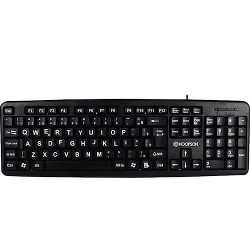 Marca: hoopson Modelo: tpc-058g Teclado com teclas grandes, com conexão usb, com indicadores em led.Gravação das teclas em tamanho grande e revestimento anti respingo. Especificações técnicas - conexão usb - padrão abnt2 - indicadores de led - teclas 107 - comprimento do cabo 1,3 m Homologação Anatel: 078531705567 Ean: 6939020449343