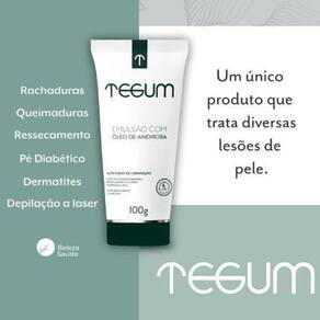 Tegum® busca alimentar a pele e manter a harmonia do seu funcionamento ao fornecer ingredientes que não agridem o ambiente celular. Tegum® não contém qualquer tipo de óleos sintéticos e semi-sintéticos sem valor nutricional ou que impeçam a respiração da pele. Ao contrário, Tegum® é feito com uma mistura equilibrada de nutrientes produzida através de um processo tecnológico avançado que o torna uma emulsão fina, aveludada e de excelente absorção. O objetivo é repor proteínas e vitaminas que, combinadas, ajudam a combater e prevenir os problemas comuns de pele, restaurando a sua textura e brilho próprios. Tegum® é indicado para áreas que tendem a sofrer atritos, que ressecam com facilidade ou descamam em especial os pés e os cotovelos. Seus principais componentes são: Óleo de Andiroba, Óleo de Malaleuca, Colágeno, Vitaminas A, E e B6, Proteínas, Ceras Naturais, Óleos Vegetais,Benzoato de Sódio. Marca: COPELI COSMETCOS
