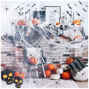 SUPER TAMANHO: O pacote de decorações de Halloween das teias de aranha inclui uma teia de aranha de aproximadamente 280 gramas 100 peças de aranhas falsas. Grande mais que o suficiente para decorar o jardim ou quintal da casa. Feliz Dia das Bruxas
