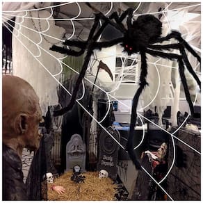 Um grande sucesso para o Halloween Aranha falsa com teia de aranha, decore sua casa assombrada de Halloween, sala de aula, festa ou exibição, até mesmo o canto da casa. Ótimo para festas à fantasia de Halloween, eventos escolares especiais, outras apresentações e assim por diante. Um presente de Halloween ideal para seus familiares, filhos e amigos