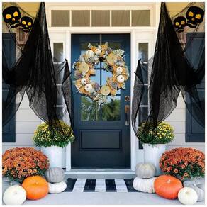 USO MÚLTIPLO:Vista tudo, desde fantasias até casas mal assombradas. Ideal para cobrir portões e entradas, use como capa em adereços, mesas, janelas, lareira, paredes e tetos, fantasias, chapéus, portas e espelhos. Adequado para decorações de Halloween em ambientes internos e externos, festas, quintais e materiais de decoração de jardins