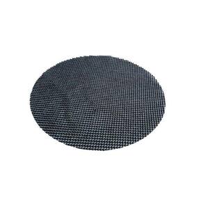 A tela antiderrapante possui um tamanho aproximado de 29 cm de diâmetro e uma espessura de 3mm. Ela é feita com uma composição de poliéster e PVC, garantindo durabilidade e resistência.