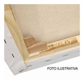 Tela grampeada na parte posterior da tela, que poderá receber ajustes de tensão, através da fixação de cunhas de madeira, que seguem junto com o produto. O tecido da tela importado 100% algodão, textura média imprimado, peso de 420 g/m2 e espessura de 21mm ou 533 mícrons, acabamento com Primer Látex Acrílico em um dos lados, contendo duas camadas de Primer Acrílico.