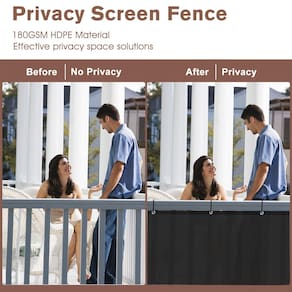 SUNNY GUARD balcony privacy screen can effectively protect your privacy, it is very suitable for balconies, gardens, terraces, swimming pools. Can block more than 90% of ultraviolet rays, which protects privacy and looks beautiful. Specifications: -Material: 100% High density polyethylene (180GSM) -UV Block Rate: Up to 90% PLEASE NOTE: Our digital images are as accurate as possible. However, different monitors may cause colors to vary slightly. It is hard to be avoided. - ?Solução de privacidade? A tela de privacidade tem baixa visibilidade. Oferece proteção perfeita contra olhares curiosos de estranhos e vizinhos e, idealmente, protege sua privacidade. (Não completamente opaco, mas ligeiramente transparente.) - ?Material de malha resistente ao clima? Feito de material de polietileno de alta densidade (HDPE) de 180 GSM, enquanto respirável, também pode bloquear 90% da luz solar e fornecer proteção UV. - ?Ilhóis? Bainha de 3,5 cm, ilhós de alumínio distribuídos uniformemente, todas as costuras são reforçadas. A tela de privacidade adota tratamento antioxidante, que é mais durável. - ?Fácil de instalar?Abraçadeiras de nylon autobloqueáveis de 9,12 cm x 0,5 cm (temperatura de trabalho de -40 °C a 76.7 °C), podem ser substituídas por corda, etc. Você pode fixar a tela de privacidade à cerca com um zíper, fácil de instalar ou remover sem nenhuma ferramenta. - ?Amplamente utilizado?As telas de privacidade são amplamente utilizadas no deck da varanda, varanda, exterior, quintal, pátio, jardim, piscina, etc.