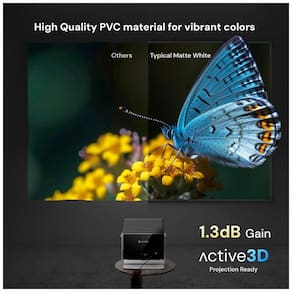 A área de projeção mede aproximadamente 244 cm de largura por 183 cm de altura, oferecendo campo visual amplo para filmes, apresentações e imagens detalhadas em ambientes de médio e grande porte. O material em PVC é tensionado na moldura para formar uma superfície plana, ajudando a reduzir vincos e irregularidades que poderiam afetar a qualidade da imagem.