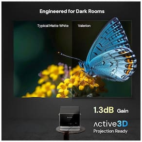 A tela de projeção fixa Valerion de 220" é projetada para ambientes que necessitam de imagem em grande formato, como home theater dedicados, salas corporativas e auditórios. A superfície branca fosca em PVC com ganho 1,3 aumenta o brilho e o contraste, mantendo boa uniformidade de luminosidade em toda a área de exibição e suportando conteúdos em alta resolução até 8K.