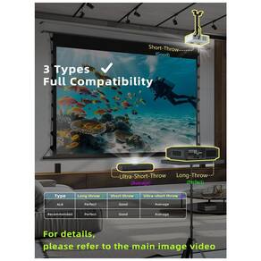A tela é compatível com projetores de longo alcance curto alcance e ultracurto alcance com melhor desempenho em configurações de longo alcance em ambientes com controle básico de iluminação. O conjunto conta ainda com suporte técnico do fabricante para dúvidas de instalação e operação em projetos residenciais e corporativos.