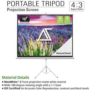 A tela de projeção portátil de 100" da AKIA SCREENS foi desenvolvida para uso em apresentações, aulas, reuniões e sessões de cinema em ambientes internos ou externos abrigados, combinando formato 4:3 com estrutura de tripé dobrável e sistema de tela pull-up. A tela utiliza material MaxWhite 2, com superfície matte branca, ganho 1,1 e ângulo de visão de 180°, garantindo imagem uniforme, boa reprodução de cores e compatibilidade com conteúdos em alta resolução em projetores de longo alcance.