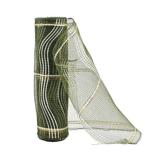 -01 Unidade Tela Decorativa Fita Natal Malha Tule Verde Fosco Fio Branco 26cm x 5 metros – Magizi