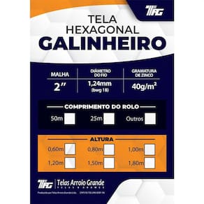 TELA HEXAGONAL GALINHEIRO TAG MALHA 2" FIO BWG 18 (1,24mm) RL 25X0,6m