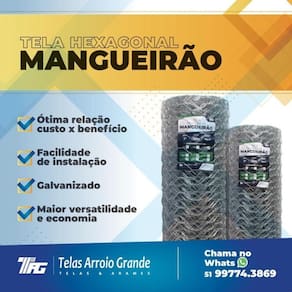 Assim como todos os artigos produzidos pela TELAS ARROIO GRANDE (TAG), a tela hexagonal veio para enriquecer o mix de produtos ofertados, proporcionando ao cliente, além do preço justo, a garantia de uma excelente qualidade e procedência, devido aos rigorosos controles de fabricação e utilização exclusiva de matéria prima GERDAU.