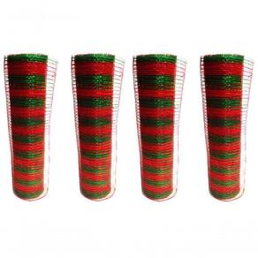 -04 unidades Tela Decoração Natal Fita 25cm x 5 metros Listras Verde e Vermelho - Magizi