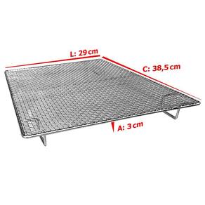 Tela para escorredor de frituras 30 x 40 cmTela de excelente qualidade e resistente ideal para escorrimento de frituras.Estrutura aramado em aço estanhado. Utilizado por profissionais autônomos, lanchonetes, restaurantes, entre outros estabelecimentos.Grade inoxIdeal para secagem, resfriamento de alimentos.Dimensões da tela:Largura: 29 cmComprimento: 39 cmAltura: 3 cmDiâmetro da trama: 0,6 cmGarantiaContra defeitos de fabricação. Marca: Pr Variedades