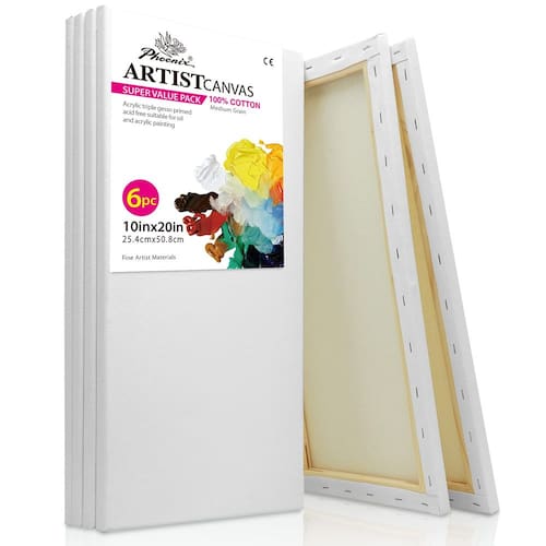 Estes pacotes de lona de super valor são ótimos para estudos rápidos, prática e sala de aula ou uso de alto volume. O algodão é preparado com gesso de titânio acrílico livre de ácido e grampeado nas costas para perfil de 1,5 cm. Está pronto para uso com todas as tintas acrílicas, tintas a óleo e outros meios de pintura. Produzido pela Phoenix – o maior e mais profissional fabricante de telas artísticas do mundo, com mais de 20 anos de experiência servindo artistas de todo o mundo. - TELA 100% ALGODÃO – Feitas de algodão natural com textura média, estas telas para processo de pintura maior força de tingimento e excelente sensação de toque. A superfície de algodão da tela de pintura não encolhe e é estável em todas as dimensões. A tela de algodão mantém bem as tintas e as mantém com seus tons naturais e brilho. - Barras esticadoras de madeira de pinheiro – Tamanho padrão para facilitar o enquadramento e pendurar na parede. Estruturas de madeira com encaixe e conexão de espiga garantem que as armações sejam firmes e resistentes. As telas são esticadas firmemente nas barras e grampeadas para criar bordas limpas. Sem deformação, são resistentes o suficiente para despejar impasto e acrílico. - Gesso com primer triplo – A tela de grão médio preparada com gesso de 227 g mantém a superfície da pintura pronta para pintar, colar, desenhar, esboçar e ilustrar com excelente força de tingimento e não desmorona ou racha. Adequado para todos os tipos de materiais de pintura, por exemplo, óleo, acrílico, aquarela, guache, pastéis e têmpera. Funciona especialmente bem para cores de óleo e acrílico para manter suas pinturas brilhantes e brilhantes. - Várias aplicações – Todas as outras telas são embaladas a vácuo. Leve e fácil de armazenar e transportar. Aplicado para criar enfeites de festival/festa, centros de mesa, artesanato artístico, miniaturas, pinturas temáticas, cartões de mesa, projetos de hobby e outras pinturas decorativas. Perfeito para criar inspiração de mesa, biblioteca visual temática, colagem em estilo clipe, cavalete de mesa e exibição de prateleira. Adequado para festas de gole e pintura, aulas de pintura, noites de pintura e noites de pintura em família. - Verificação AP e CE – Tamanho da tela: 25 x 50 cm / pacote com 6. Peso sem primer da superfície de algodão - 113 g e peso preparado - 226 g. Ideal para estudantes, adultos, iniciantes e profissionais com diferentes níveis de pintura. Telas de pintura ideais e seguras.
